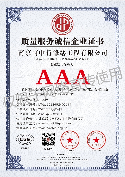 资质认证:依托总公司强大的技术与资源支撑,我们共享防水防腐工程专业承包二级资质,该资质代表行业内中高端施工能力,确保工程质量达到规范标准。同时持有安全生产许可证